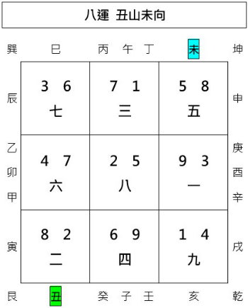 這樣就將八運癸山丁向的飛星盤(挨星盤)排列出來了。