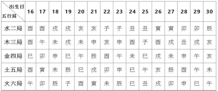 ★先依據農曆出生日及第四步驟:定五行局所得到的五行局,找出欲將紫微星擺入的宮位。